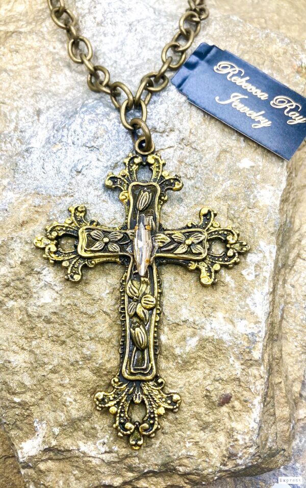 SKU: 03099 Categories: Collections: Faith/Saint, Collections: Iced Gems/Bling, Collections: Old World/Bohemian, Necklace, Rebecca Ray Originals Tags: cross, dangle, designer, inspirational jewelry, vintage, wholesale