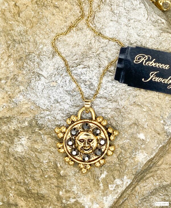 16″ Stainless Steel chain , with 50mm Sun pendant with Gun metal crystal stones